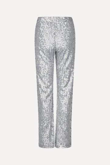 Silverfärgade paljettklädda byxor i lös passform med resår i midjan och raka, vida ben. Halvfodrad för en bekväm passform. Fullända looken med matchande skjorta.
